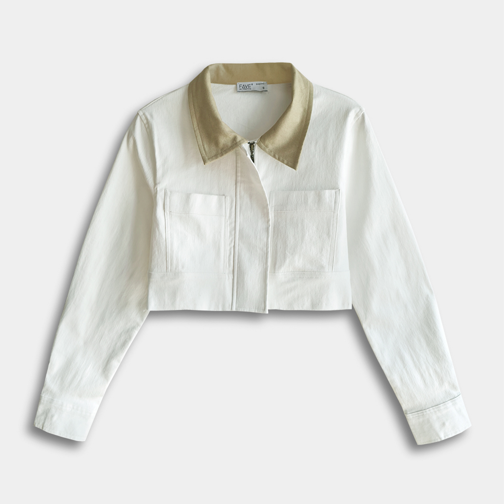 Women Long Sleeve Crop Top Jacket - White - FVI510694